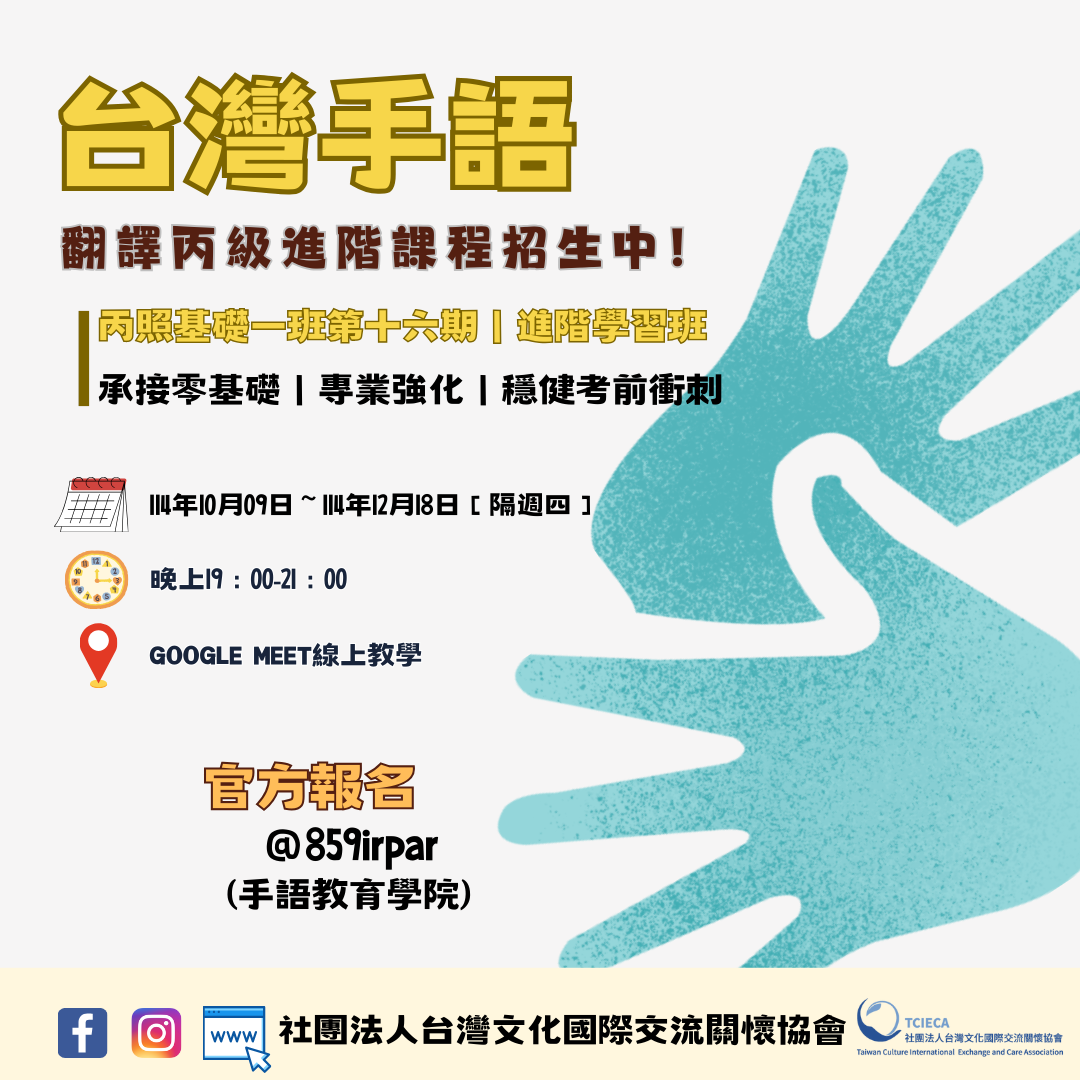 台灣手語翻譯丙級技術執照【基礎一班第十六期】熱烈招生!