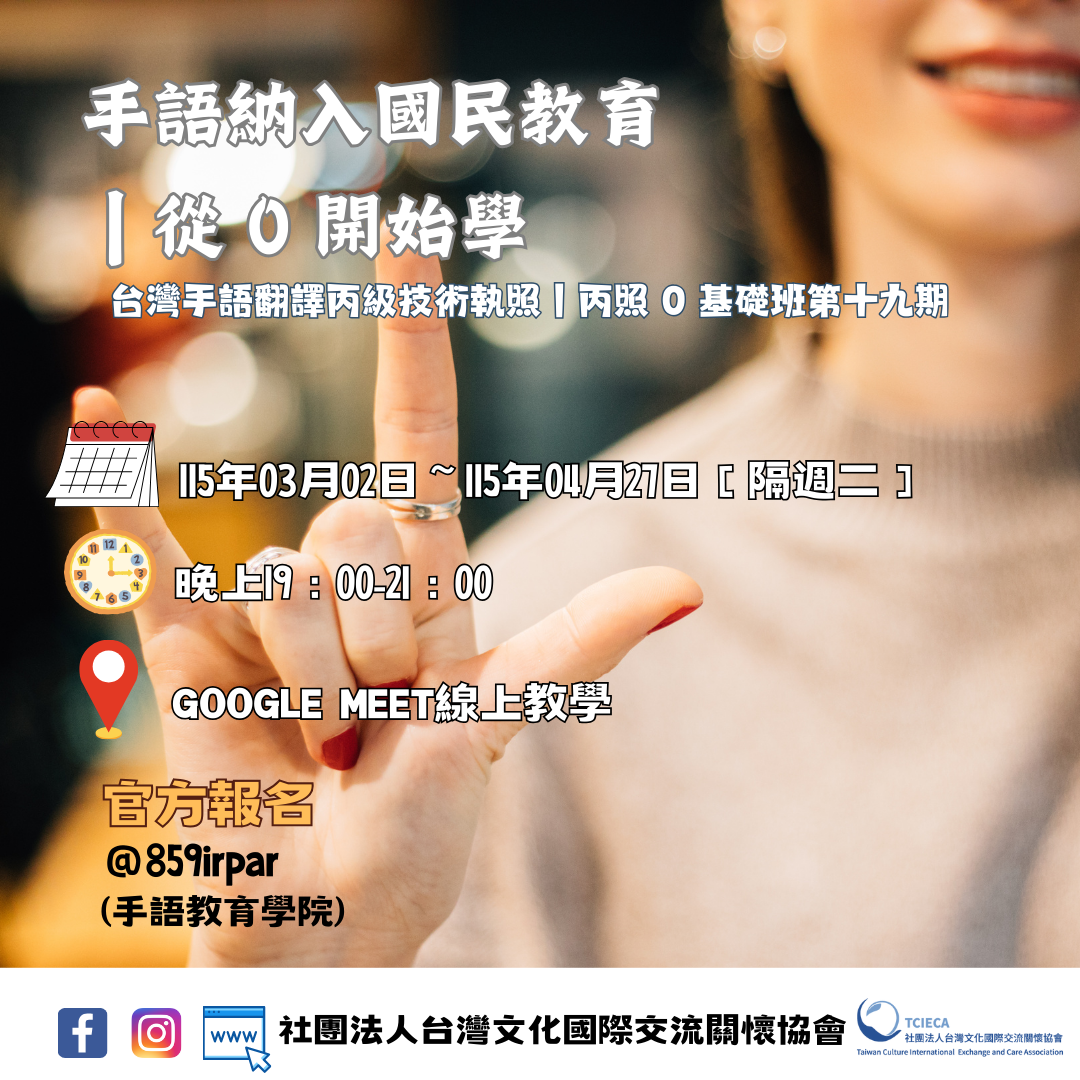 📣 台灣手語翻譯丙級技術執照|丙照 0 基礎班第十九期